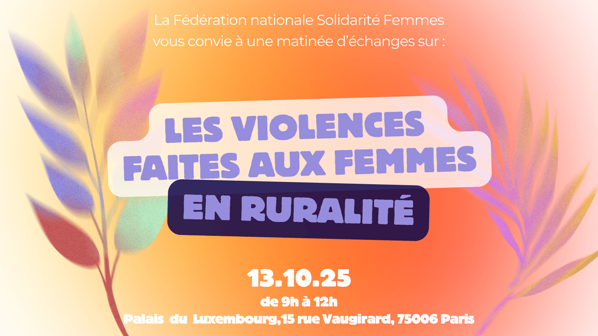 ➡️Nous sommes invitées le lundi 13 octobre pour une matinée d'échange au Sénat, organisée par la Fédération Nationale Solidarité Femmes à l'occasion de la journée des femmes rurales 📣